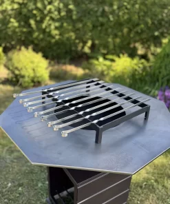 • 9 nerūdijančio plieno iešmai – ilgaamžiai ir patogūs, su kuriais galite kepti šašlykus, daržoves ir kitus skanėstus.